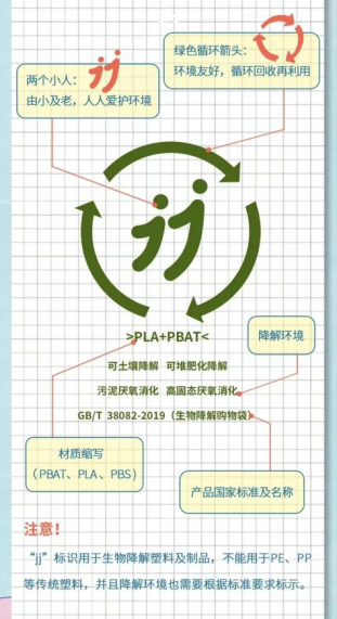 1、看图形标识:认准生物降解塑料制品图形标识“双J标识”,产品包装上应清晰标注该标识,表明产品符合生物降解相关要求,无标识或标识模糊的谨慎选择。